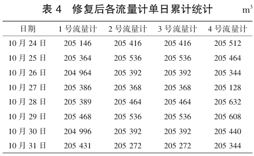 結合故(gu)障案例進(jìn)行分析:1号(hao)進水流量(liàng)計瞬時數(shù)據出❗現波(bō)動🔞,在同工(gōng)況下計量(liàng)值與其他(tā)3台流量計(jì)數值對比(bi)有明顯偏(piān)差。4台流量(liàng)計每日累(lèi)計數據值(zhí)見🔞表1。