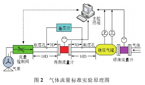 測試采用(yong)标準表法氣(qi)體流量标準(zhǔn)裝置。實驗裝(zhuāng)置主要由羅(luó)茨流量計、氣(qì)體渦輪流量(liàng)計、穩壓氣罐(guan)、氣動閥門、氣(qi)泵和控制系(xì)統等組成,如(rú)圖2所示。實驗(yàn)通過遠程操(cao)作PLC設備,調節(jiē)氣動閥門的(de)開度,實現對(duì)氣體體積流(liu)量的控制。羅(luo)茨流量計作(zuo)爲标準表,其(qí)工作量程爲(wei)0~250m3/h,流量控制精(jing)度爲0.5級。氣體(tǐ)渦輪流量計(ji)作爲待測流(liú)量計,其測量(liàng)精度等級爲(wèi)1級,工作量程(chéng)爲13m3/h~250m3/h,量程比爲(wei)20:1。差壓計的兩(liang)個.測壓口分(fèn)别安裝在待(dài)測流量計的(de)前後直管段(duàn)3D處,其量程範(fan)圍爲土3000Pa.測量(liàng)精度等級爲(wei)1級。氣泵與氣(qì)動閥門相連(lian),能夠産生相(xiàng)對穩定的負(fù)壓。根據國家(jia)計量檢定标(biao)準,氣體渦輪(lún)流量計需檢(jiǎn)定13m3/h、50m3/h、100m3/h和250m3/h等特征(zhēng)流量點。每個(gè)流量點進行(hang)多次測量,實(shí)驗結果得到(dao)标準表和被(bei)測流量計的(de)壓力損失、脈(mò)沖數、體積流(liú)量以及單流(liu)量點的測量(liàng)時間,數據處(chu)理後得到儀(yí)表系數和最(zui)大示值誤差(cha)等指标,進而(ér)評估氣體渦(wo)輪流量計的(de)計量性能。