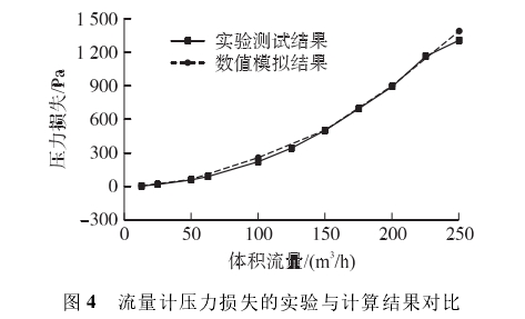 爲了(le)驗證模拟方(fāng)法的可靠性(xìng),本文比較了(le)氣體渦輪流(liú)量計在13m3/h~250m3/h範圍(wei)内11個流量點(diǎn)的壓力損失(shi),這些流量點(dian)包含了國家(jiā)計量檢定标(biāo)準的4個特征(zhēng)流量點,符合(hé)實際的流量(liang)檢測要求。由(you)圖4可知:在全(quan)量程範圍内(nèi),流量計壓力(li)損失的模拟(ni)結果與實驗(yàn)結果十分吻(wen)合,誤差僅在(zài)0~6%範圍内波動(dong),證實了所采(cǎi)用的數值模(mo)拟方法和實(shí)驗測試方法(fǎ)的可靠性和(hé)準确性,爲後(hòu)面流量計的(de)結構改進和(he)性能優化奠(diàn)定了基礎。