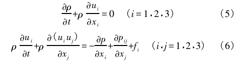 式(shì)中:xi,xi爲空間坐(zuò)标分量,ui,uj爲流(liú)體流動速度(du)分量:p爲靜壓(ya),pij爲應力張量(liang)ƒi爲體積力分(fen)量。