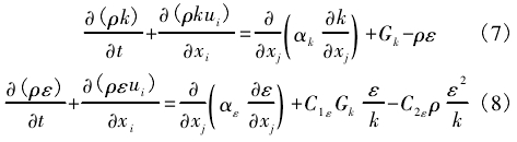 式中:Gk表示平(píng)均速度梯度(dù)所産生的湍(tuān)流動能.αε,αk分别(bie)表示ε和h的擴(kuo)散率,C1ε、C2ε爲系數(shu)。