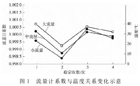 檢(jiǎn)定過程中,一(yi)般按被檢流(liu)量計額定流(liu)量的70%,50%,30%設爲大(dà)㊙️、中、小流量檢(jiǎn)定點,通過對(dui)流量計在線(xiàn)采集的數據(ju)進⭐行分㊙️析。選(xuan)用其♍中變化(huà)明顯的4次檢(jiǎn)定流量數據(ju),流量✉️計系數(shù)與溫度👄關系(xì)變化如圖♉1所(suo)示。4次檢定數(shu)據出現規律(lü)性的變化,其(qí)變化趨勢和(he)檢定油溫❗變(bian)化趨勢一👣緻(zhì),說明原油溫(wen)度的高低決(jué)定了流量計(jì)系數的大🏃♀️小(xiǎo)♻️。