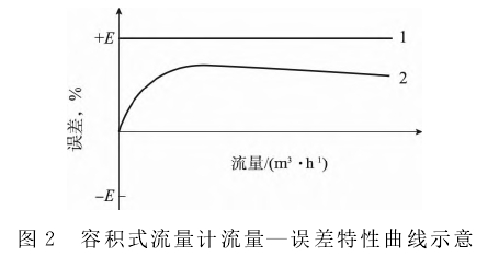 通過查找對(duì)各種容積式(shì)流量計進行(háng)檢定試驗的(de)大量數據,可(ke)得出容積式(shì)流量計的實(shi)際誤差曲線(xian)如圖2中曲線(xian)2。