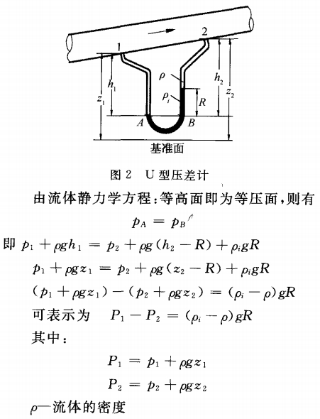 可見(jiàn),壓差的産生是(shì)由于局部阻力(li)損失造成的,而(er)不是因流道變(biàn)化由動能轉換(huan)而來的。那麽,壓(ya)差指示值指示(shì)的是否是靜壓(ya)力呢?我們先看(kàn)一看U型壓差計(jì)的測壓原理。如(ru)圖2所示。U型壓差(cha)計測量均勻管(guǎn)内流體作定态(tai)流動時1、2兩點的(de)壓差。