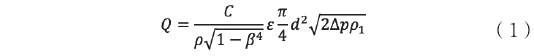式(1)中(zhong),C一流出系數(shu);ε一膨脹系數(shù);D一管道内徑(jing)(m);d一節流孔徑(jìng)(m);△p一壓㊙️力差(Pa);ρ1一(yī)流體密度(kg1m3);β一(yi)直徑比;qm一質(zhi)量流量🙇🏻(kg/s)。