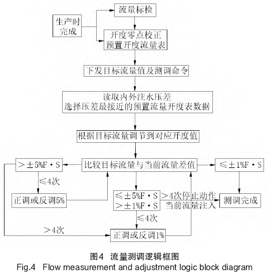 分層注水時(shí)地面管線通(tong)常采用恒壓(yā)模式,注水壓(yā)差基本👣恒定(ding)。優化後的測(cè)調邏輯如圖(tú)4所示。生産時(shí)🆚将1MPa~3MPa注水壓差(cha)的多組不同(tong)開度對應流(liú)量的數據進(jìn)行計算後,形(xíng)成數據表🏃🏻♂️格(gé)預置在儀器(qì)‼️内部存儲器(qi)🐉中,并對儀器(qì)開度零點進(jin)行校☔正。一般(ban)來說井下儀(yí)⁉️流量調配精(jīng)度要求爲1%F.S,地(dì)面控制設備(bèi)對井下分注(zhù)儀下發測調(diào)🆚命令并給予(yu)目标流量值(zhi),之後井下儀(yí)讀取内外壓(ya)并計♈算注水(shui)壓差,選擇與(yǔ)該壓差值最(zui)接💚近的預置(zhi)數據表格作(zuo)爲測調依據(jù)🌍。查🔞詢表格确(que)定目标流量(liàng)對應的開度(du)值并進行開(kāi)度調節,這樣(yang)能夠快速定(ding)位目👄标開度(du),縮短調節時(shi)間🚶,減少運動(dòng)🐇部件動作次(ci)數,降低電能(neng)消耗,延長儀(yi)器壽命。之後(hou)🔞對比目标流(liu)量與當前測(ce)得的流量值(zhí),根據流量差(chà)值大小确定(dìng)不同的調節(jie)步長,直到滿(man)足±1%F·S的精度要(yào)求。同時,若同(tong)一調節步長(zhǎng)連續4次都不(bu)能滿足要求(qiu)👈,則采用更小(xiǎo)的步長進行(háng)調節或停止(zhǐ)調節。