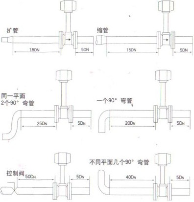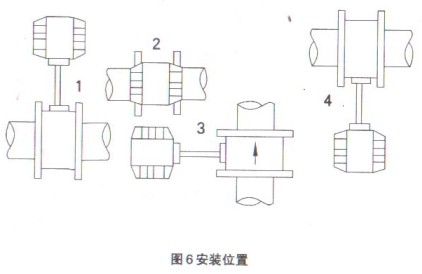 4、 安裝條(tiáo)件:渦街流(liú)量計應遠(yuan)離振動源(yuán),有振動時(shí)在前後‼️直(zhi)管⭐段2DN處加(jiā)支架用橡(xiang)皮減振。傳(chuan)感器通徑(jing)圓應與直(zhí)管段内徑(jing)圓保持同(tóng)心。法蘭焊(hàn)接時,密封(feng)夾緊時,管(guan)内不得有(yǒu)突出部分(fèn)。流向應與(yǔ)箭頭方向(xiàng)一緻。(高溫(wen)時👉推薦2、3、4位(wei)置,常溫和(hé)低溫時推(tui)薦1位置,垂(chui)直管道時(shi)選3位置)見(jiàn)圖6