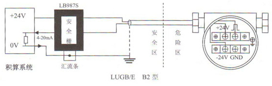 一、輸出頻(pín)率信号的(de)三線制渦(wō)街流量儀(yí)表配線設(she)計 渦街流(liú)量計 輸出(chū)頻率信号(hào)的三線制(zhi)流量傳感(gǎn)器采用DC24V或(huo)DC12V電源供電(dian)❤️,一般通過(guo) 三芯屏蔽(bì)電纜線 (RWP3×0.5mm)與(yu) 顯示儀表(biao) 或計算機(ji)相連,屏蔽(bì)層應可靠(kao)地接到放(fàng)大器殼的(de)接地螺絲(sī)上。 屏蔽電(diàn)纜 線的選(xuǎn)擇應适合(hé)現場環境(jìng)要求,另外(wài)屏蔽電纜(lǎn)線要與其(qi)它強功率(lǜ)電力線分(fèn)離,不能平(ping)行走線。 二、輸(shū)出标準4~20mA電(diàn)流信号的(de)兩線制渦(wo)街流量儀(yi)表配線☂️設(she)計 輸出标(biāo)準4~20mA電流信(xin)号的兩線(xian)制變送器(qì)采用DC24V電源(yuán)供電,一般(ban)通過兩芯(xīn)屏蔽電纜(lǎn)線(RWP3×0.5mm)與顯示(shi)儀表或計(jì)算機相連(lián),屏蔽層應(yīng)可靠地🌂接(jie)到放大器(qì)殼的接地(dì)螺絲上。屏(píng)蔽電纜線(xiàn)的選擇應(yīng)适合現場(chang)環境要求(qiú),外屏蔽電(diàn)纜線要與(yu)其它強功(gōng)率電力線(xian)分♍離,不能(néng)平行走線(xiàn)。 三、帶RS-485通(tong)訊接口功(gōng)能的渦街(jiē)流量儀表(biao)配線設計(jì) 帶RS-485通訊功(gong)能的渦街(jiē)流量儀表(biao)采用DC24V電源(yuán)供電,與其(qí)它設備之(zhi)🐪間采用四(si)線制傳輸(shū)方式。 四(sì)、防暴型渦(wō)街流量儀(yi)表配線設(shè)計 LUGB/E三線制(zhi)脈沖輸出(chū)型渦街流(liu)量儀表與(yǔ)LB978齊納安全(quán)栅相連、LUGB/E兩(liang)線制标準(zhǔn)4~20mA電流輸出(chu)型渦街流(liu)量儀表與(yu)LB987S齊納安全(quán)栅相連🔆可(ke)構成本質(zhi)安全型防(fang)爆系統,産(chǎn)品防爆标(biao)🥰志爲Ex iaⅡCT2-T5。本安(an)防爆型渦(wo)街流量傳(chuan)感器/變送(song)器與防爆(bao)安全栅和(hé)積算系統(tǒng)等關聯設(shè)備🎯的接線(xian)性請參看(kàn)防爆🚩安全(quán)栅廠家提(tí)供的接線(xiàn)☔說明和以(yǐ)下㊙️所示圖(tu)。 注意事項(xiang): (1)防爆型傳(chuán)感器和變(biàn)送器安裝(zhuāng)于危險場(chang)所,安全栅(shan)⛷️、顯示儀表(biǎo)、供電電源(yuán),計算機等(děng)關聯設備(bèi)必須安裝(zhuāng)在安全場(chǎng)所。 (2)傳感器(qì)和變送器(qì)應有可靠(kào)接地,防爆(bào)地線不得(dé)與強電系(xì)統保護接(jiē)地共用。