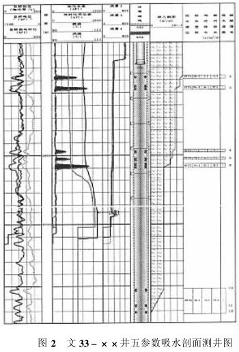 例(lì)如:圖2是(shì)文33-xx井五(wǔ)參數吸(xī)水剖面(miàn)測井圖(tú),測井在(zài)2690m遇阻,第(di)10、11、12号層未(wèi)測出,但(dàn)經電磁(ci)流量計(ji)測井曲(qǔ)線顯示(shi),這3個遇(yù)阻層吸(xī)水,絕對(duì)吸水量(liang)爲74.6m3/d,相對(dui)吸水量(liàng)爲41.2%。