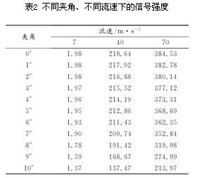 2)在流速(sù)相同的情況(kuang)下,随着夾角(jiǎo)的增大,信号(hào)強度🏃♀️逐💋漸減(jiǎn)小,并随着夾(jia)角的增大,信(xìn)号強度的衰(shuai)減程🍉度也逐(zhu)漸🌈增大。夾角(jiao)在1°~7°範圍,對信(xin)号強度的衰(shuāi)減影響不大(dà),可忽略,超過(guò)7°以後對信号(hao)強度影響變(biàn)大,不可忽略(luè)。