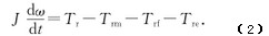 式(2)中:J—葉(ye)輪的轉(zhuǎn)動慣量(liàng);t—時間;ω—葉(yè)輪的轉(zhuan)速;Tr—推動(dong)力矩;Trm—機(jī)械摩擦(ca)阻力矩(jǔ);Trf—流動阻(zǔ)力矩;Tre—電(diàn)磁阻力(li)矩。