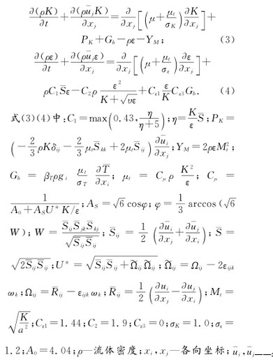 設定渦(wo)輪流量(liang)計數值(zhi)模拟的(de)工作介(jiè)質爲空(kong)氣,流動(dong)處⭐于♌湍(tuān)流流動(dong),數值模(mó)拟湍流(liú)模型采(cǎi)用Realizable K-ε模型(xíng),該模型(xing)适用☂️于(yú)模拟計(jì)算旋👌轉(zhuan)流動、強(qiang)逆壓梯(tī)度的邊(bian)界層流(liú)動、流動(dòng)分離和(he)二次流(liú)等,其模(mo)型方程(cheng)表示❤️爲(wèi):