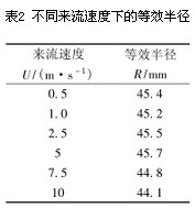 表2 不(bú)同來流速度下(xia)的等效半徑