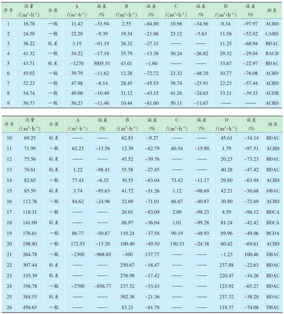 表2 一般水質(zhi)時流量計誤(wù)差統計
