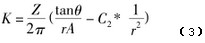 式中:Z—渦輪葉片數(shù)目;θ—葉片與軸線夾(jiá)角;r—葉片平均半徑(jìng)👄;A—流通截面積;ρ—流體(ti)密度;μ—流體粘度;C1—常(cháng)數。