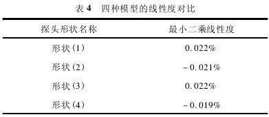 2) 對比得出的(de)四種探頭的線性(xing)度,第四種形狀的(de)探🔞頭的線性度相(xiang)對來說更好。