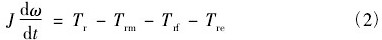 式中: J 爲渦(wo)輪的轉動慣量; ω 爲(wèi)渦輪的旋轉角速(su)度,t 爲時間,Tr爲🆚氣流(liu)對葉片的推動力(lì)矩,Trm爲機械摩擦力(li)矩,Trf爲流💰動阻力矩(ju),Tre爲電磁阻力矩。