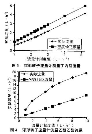 用(yòng)球形轉(zhuǎn)子流量(liàng)計測量(liang)乙酸乙(yǐ)醋的結(jie)果見圖(tú)4,由圖可(ke)♌知,球形(xíng)轉子流(liú)量計的(de)這種類(lei)型,粘度(du)對其的(de)影響非(fei)常之大(dà),且實際(jì)流量的(de)線性度(dù)也極差(chà)。所以在(zai)實驗中(zhong)絕對不(bú)可忽視(shì)粘度對(dui)示值的(de)影響。