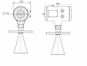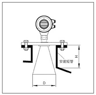 如果喇(la)叭直徑大(da)于安裝短(duan)管的直徑(jing),包括延伸(shen)管在内🙇🏻的(de)天線🌈需要(yao)從容器裏(lǐ)面安裝,并(bìng)将儀表擡(tái)高。選擇延(yán)伸管使儀(yi)表至少擡(tái)高100mm。