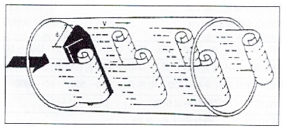 在蒸汽流(liu)體中設置三(san)角柱型旋渦(wō)發生體,則從(cong)旋渦發生體(ti)兩側交替地(di)産生有規則(zé)的旋渦,這種(zhǒng)旋渦稱爲卡(ka)門旋渦,如右(you)圖🐪所示,旋渦(wo)列在旋渦發(fā)生體下遊非(fēi)對稱地排列(lie)。