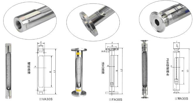 LZB-VA/WA/FA 30S系列玻璃轉子(zǐ)流量計外形及(jí)安裝尺寸: