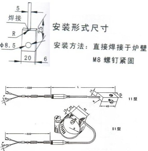 是采用直(zhí)徑Φ4或者Φ5的(de)铠裝熱電(dian)偶原件作(zuo)爲測溫探(tan)頭,測量端(duān)用螺釘、抱(bào)箍或者焊(han)接(采用熱(re)電阻原件(jian)❤️時不宜采(cai)♊用焊接式(shì)🚶♀️)等方式将(jiāng)測溫探頭(tóu)與導熱闆(pan)👉表面緊緊(jǐn)貼合在一(yi)起,導熱闆(pan)的另一⚽面(miàn)有與被測(ce)面相同的(de)曲面,導熱(re)闆被焊在(zài)或者卡箍(gū)緊緊與被(bèi)測爐壁相(xiàng)貼,即可測(cè)得爐壁或(huo)者管壁的(de)溫度。爐壁(bì)🐆熱電偶适(shì)用于電廠(chang)鍋爐爐壁(bi)、管壁及其(qi)他圓柱體(ti)表面測溫(wēn)。