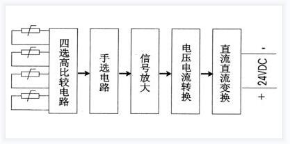 的測(ce)量信号通(tōng)過輸入電(diàn)路(選擇高(gāo)信号)或選(xuǎn)點輸入電(diàn)路選中某(mǒu)一路信号(hào),該信号通(tong)過放大和(he)電壓/電流(liú)(V/I)轉換單元(yuan)将放大器(qì)的輸出電(dian)壓轉換爲(wei)4~20mA恒定電流(liú)輸出,原理(lǐ)框圖如下(xia)圖所☔示:
