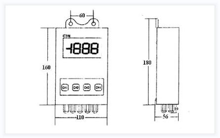 15.安裝方(fang)式: 壁挂式(shi):160(高)×110(寬)×56(厚);兩(liǎng)固定孔距(jù)離60mm.固定螺(luo)釘M4×10mm.
