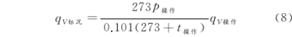 式(6)兩邊同(tóng)時除以時間t,得(dé)到關于理想氣(qi)體操作狀态和(he)标準狀态下體(ti)積流量的等式(shi):
